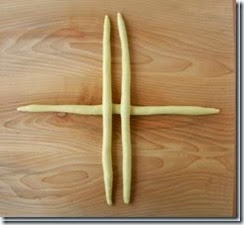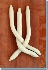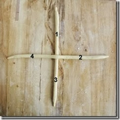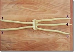 There are also other ways of arranging three strands in order to start the braid from the middle of the ropes. Both techniques I am going to present next will give you a nicely proportioned loaf.