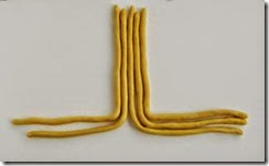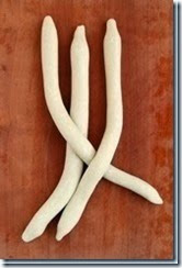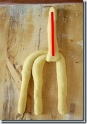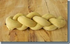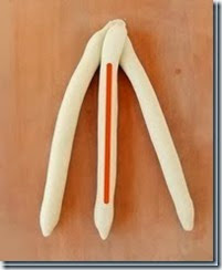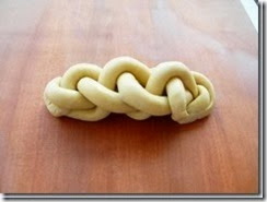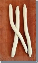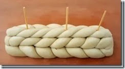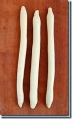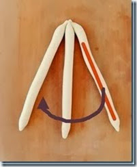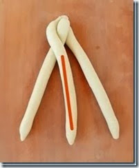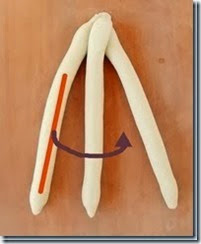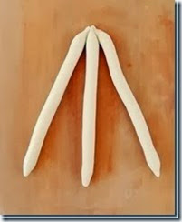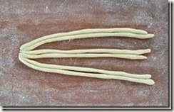 Roll out 3 strands of dough, of equal length and diameter, with tapering ends.