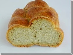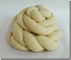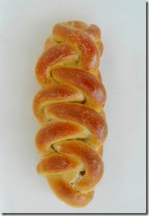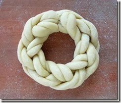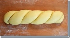 Just twisting two ropes of dough together can lead to multiple uses for it. First of all, as is, either baked in free-form or in a pan. It can also be formed into a wreath or serve as a base or top in a multi-decked loaf. A simple mound of dough draped with a twist turns into an impressive loaf. Twisting two ropes also enhances other braids.